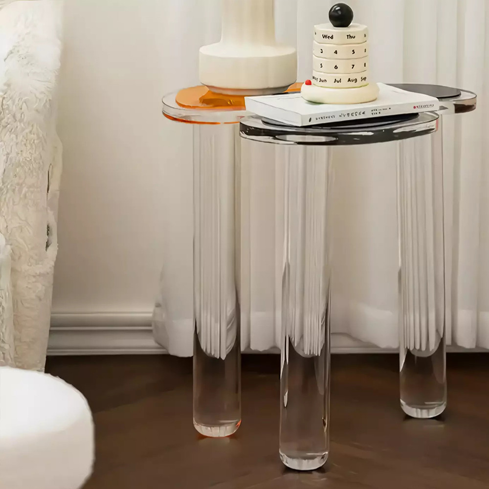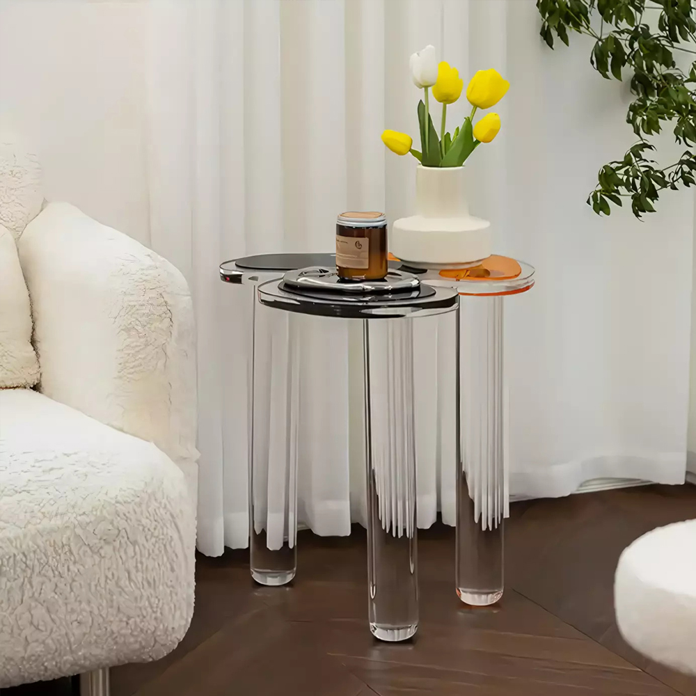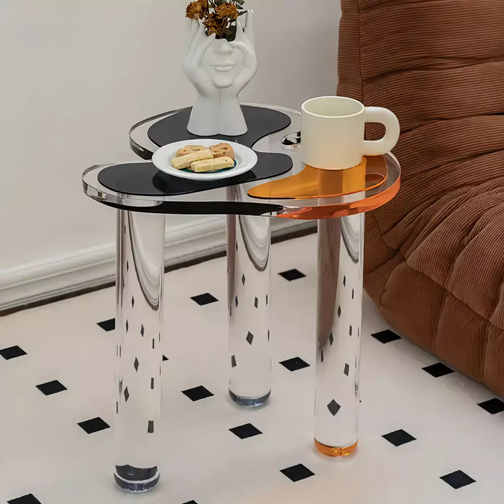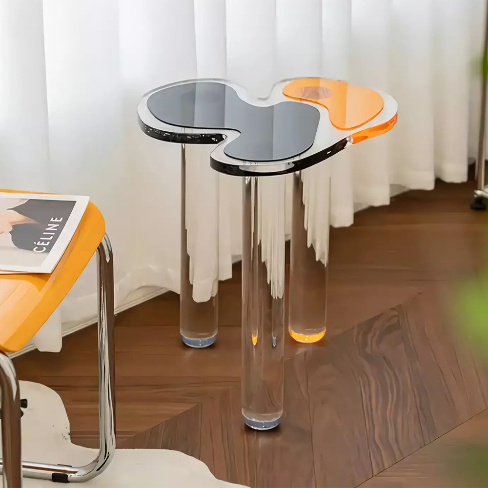 Дизайнерский журнальный стол с фигурной столешницей на 3-х прозрачных ножках Rahakif
