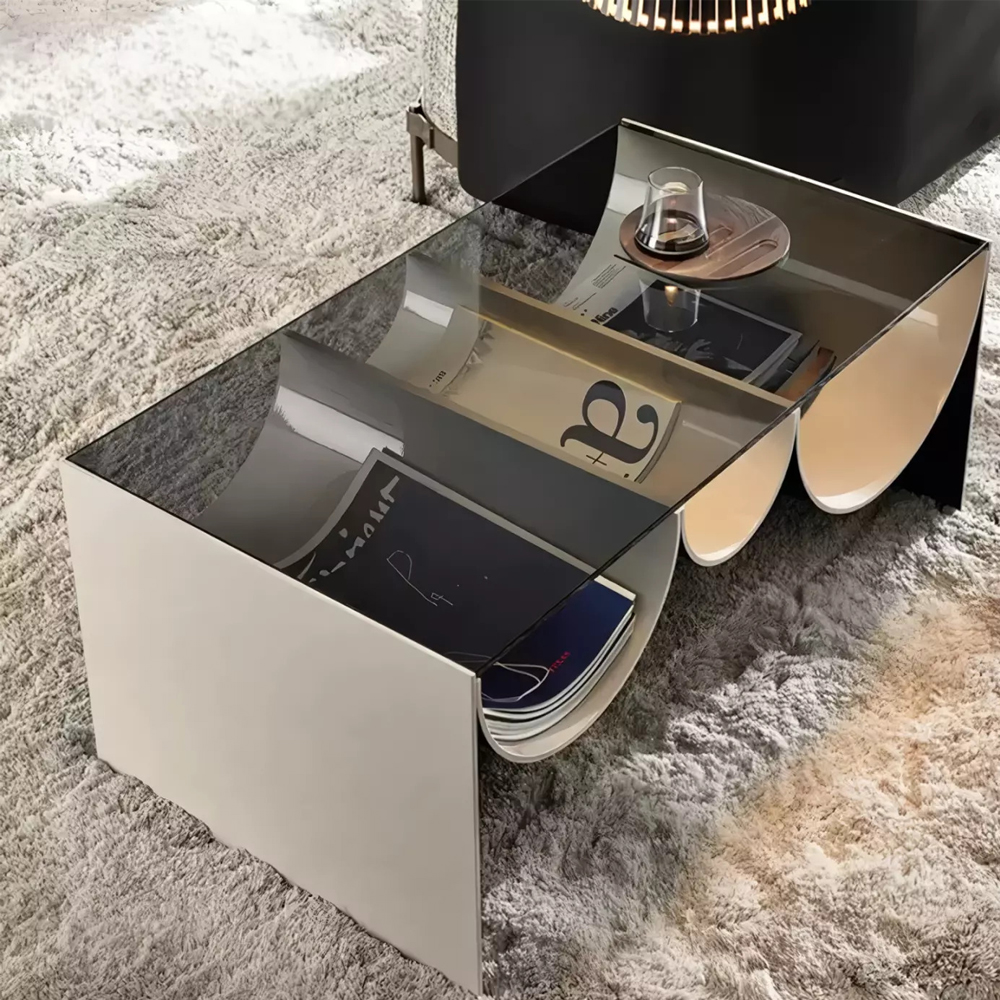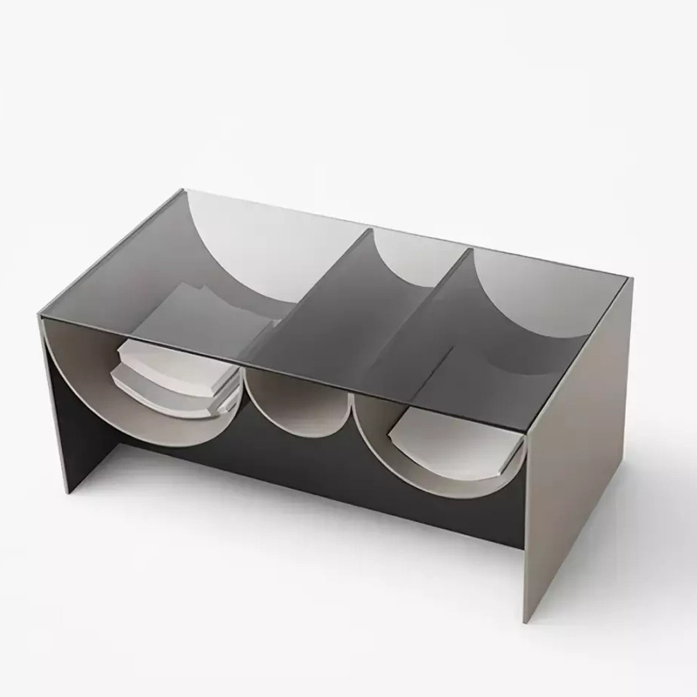 Дизайнерский журнальный стол с полукруглыми полками под столешницей Tiwoberoc