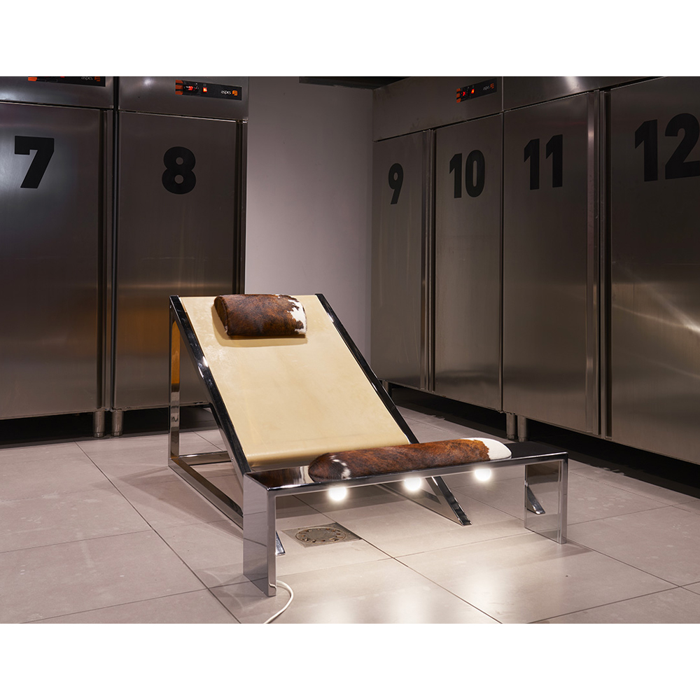 Дизайнерское кресло на металлическом каркасе с подставкой для ног Poltronova Mies Armchair