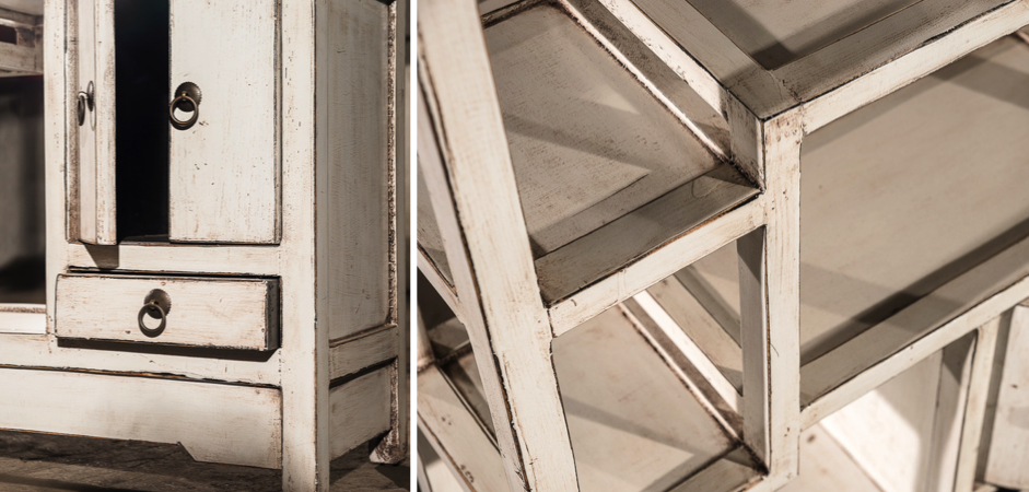Полки непременно должны были соответствовать размерам и очертаниям этих предметам, которыми заполнялась каждая ячейка. Впоследствии стеллаж и сам стал восприниматься как рельефное украшение интерьера, которое дополняется вазами, декоративными фигурками и различными статуэтками, привезенными из разных уголков мира