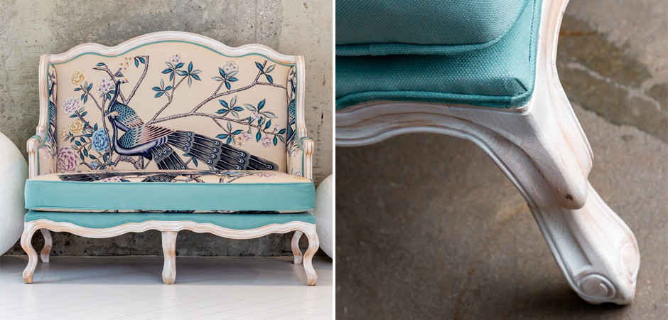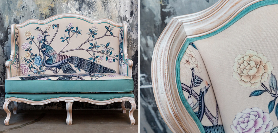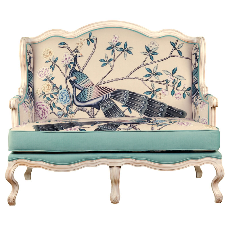 Перенестись в эпоху шинуазри, непревзойденного французского стиля, легко, если купить двухместный диван с синими павлинами Emperor's Bird.