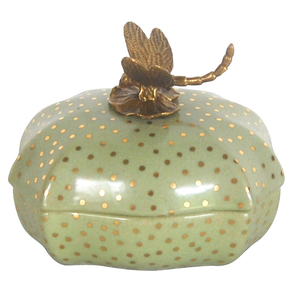 Фарфоровая шкатулка с бронзовой стрекозой Eden Garden Green