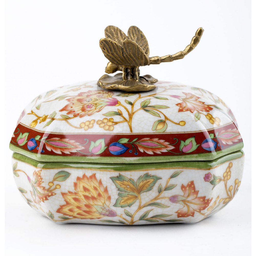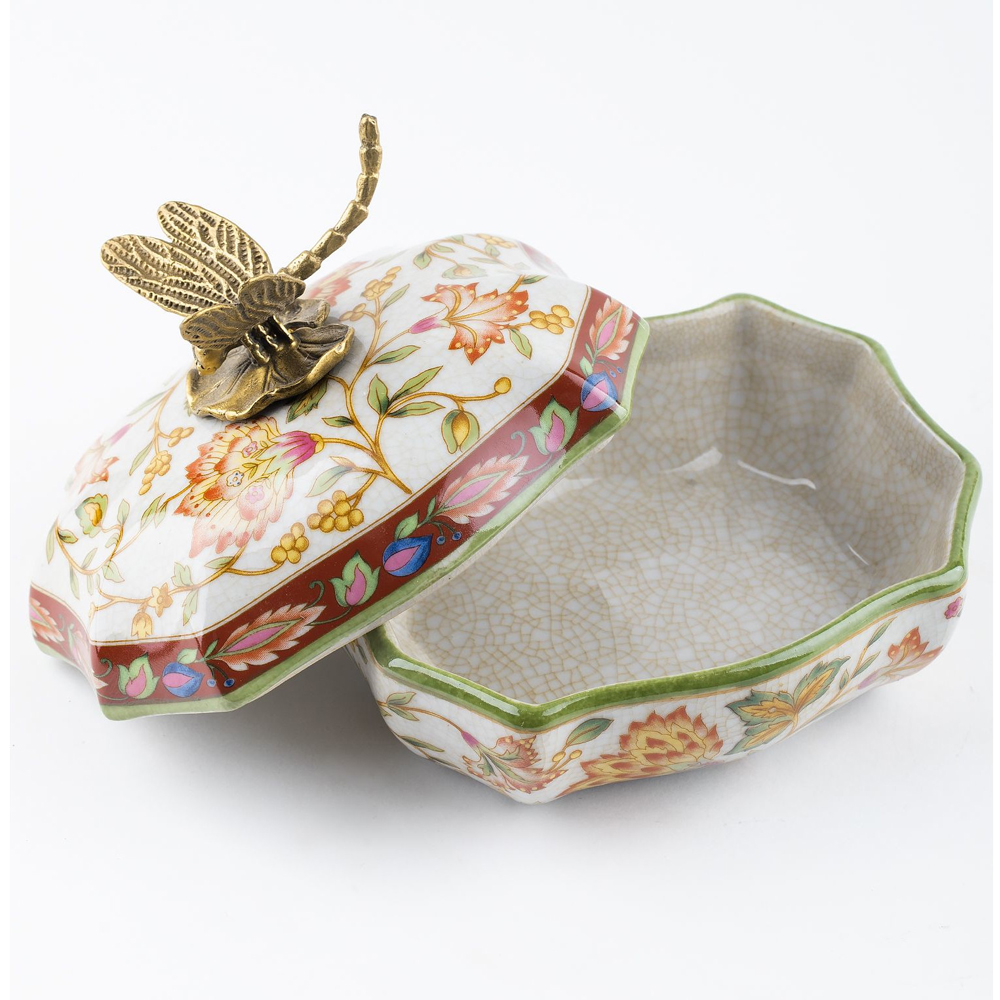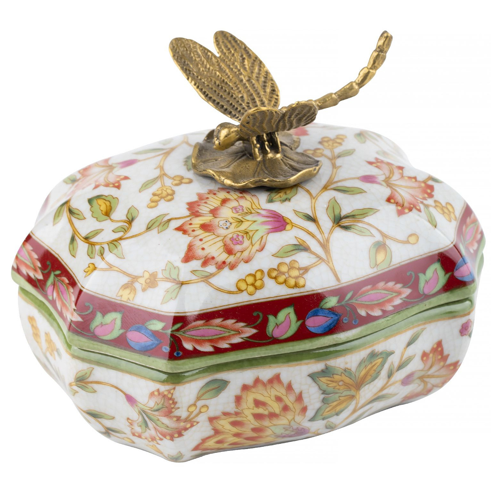 Фарфоровая шкатулка с бронзовой стрекозой Eden Garden