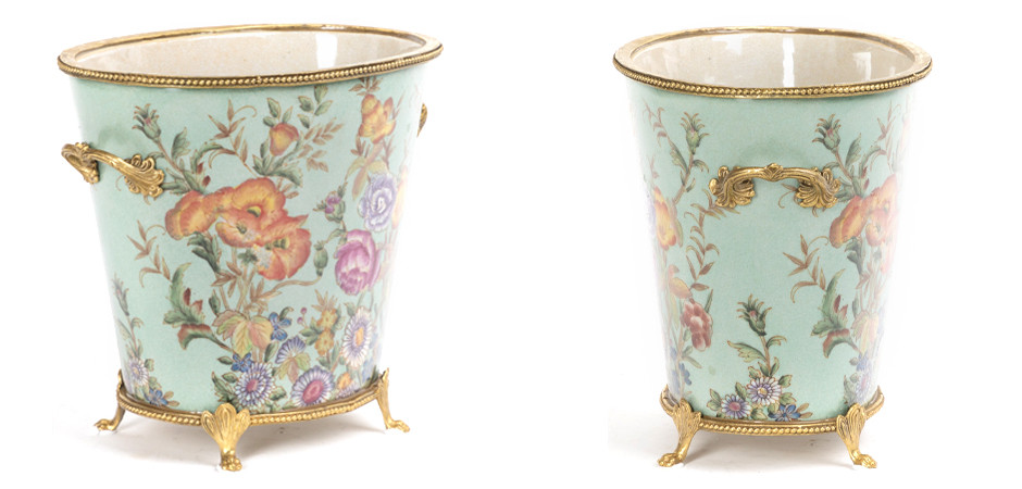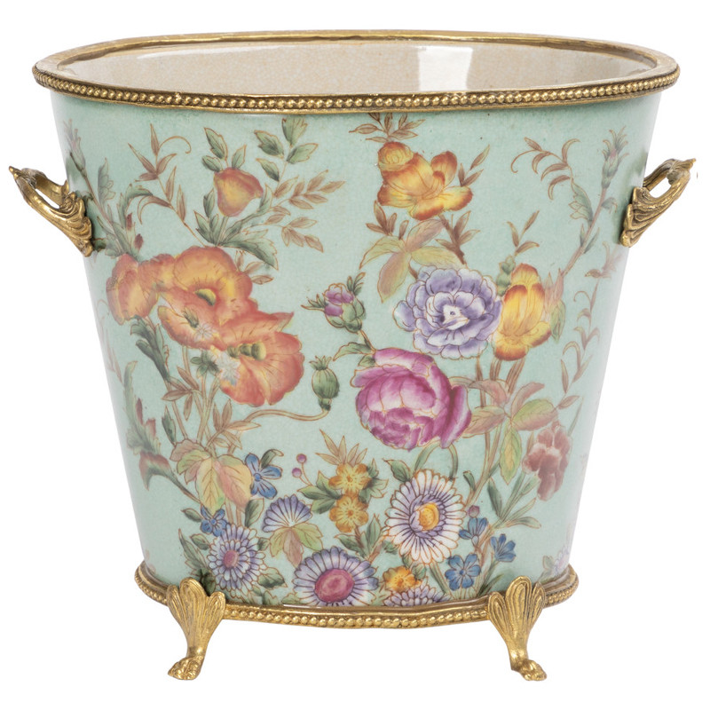 Фарфоровое кашпо с бронзовой каймой Turquoise Garden