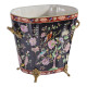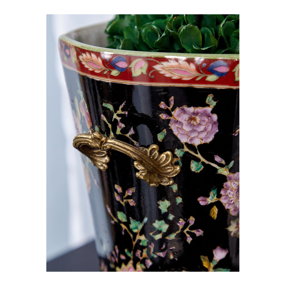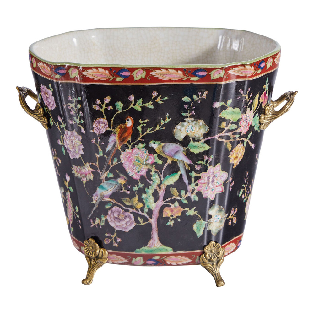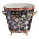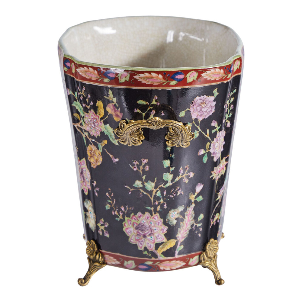 Кашпо из фарфора черная с цветочной росписью и бронзовой стрекозой Spring Garden