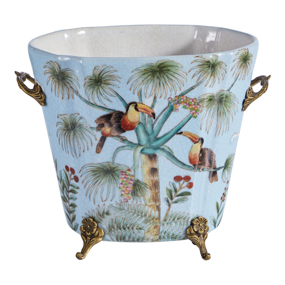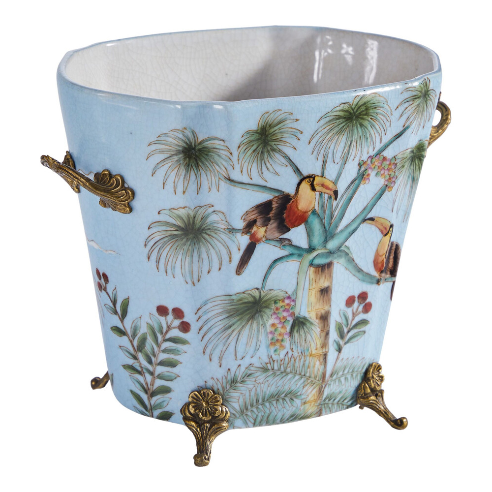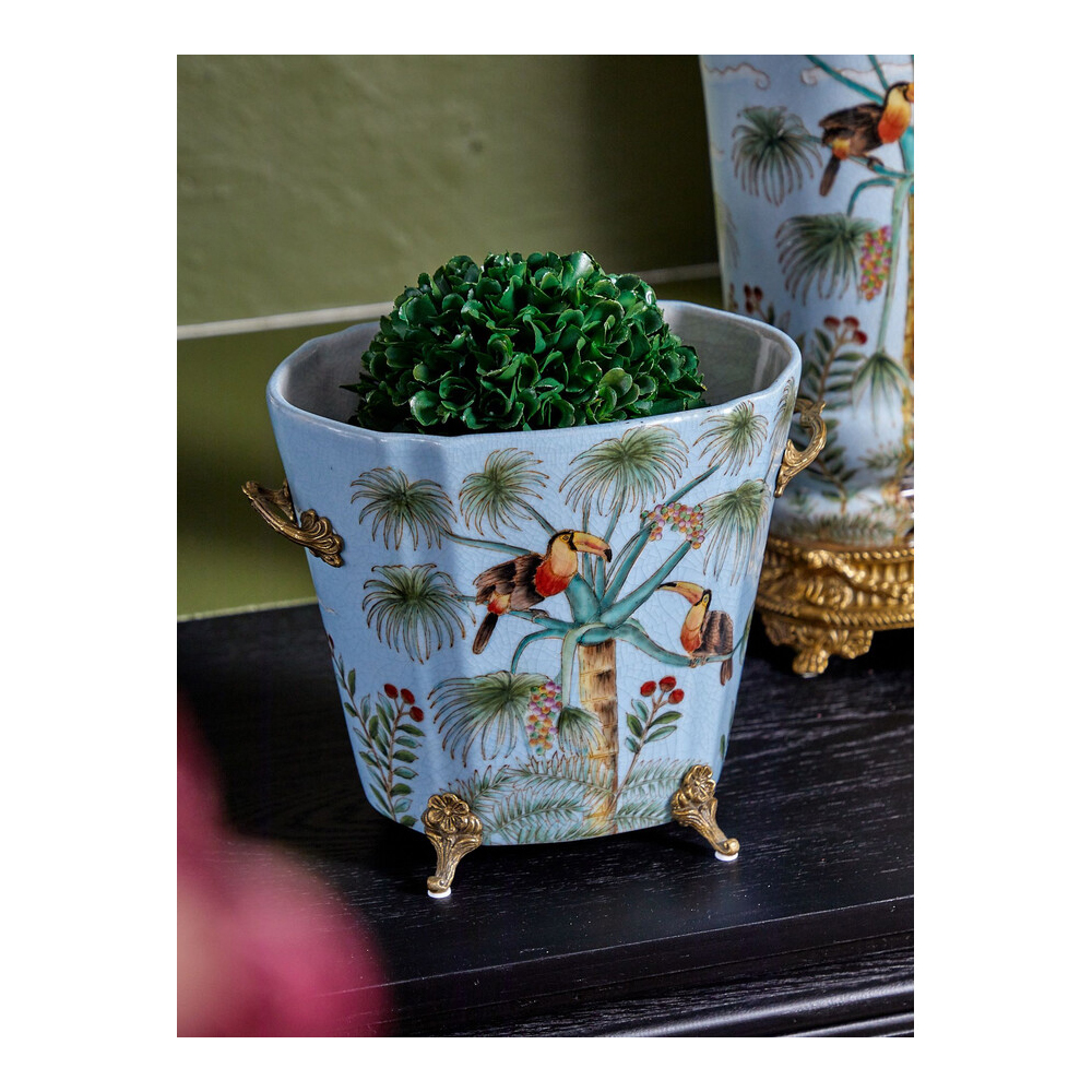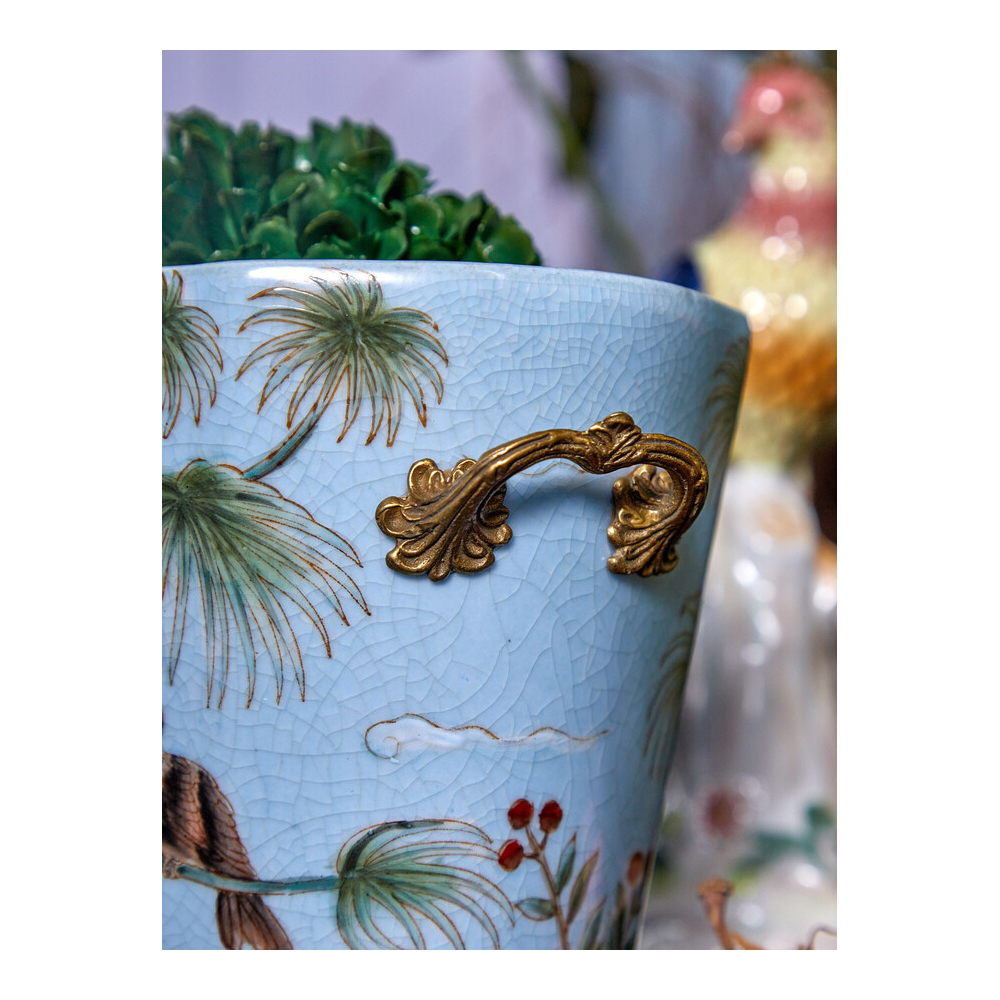Кашпо из голубого фарфора с бронзовыми элементами Blue Garden