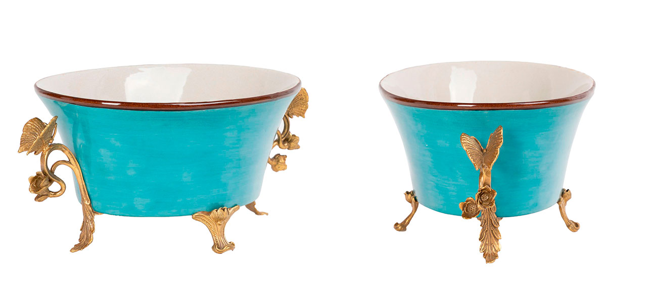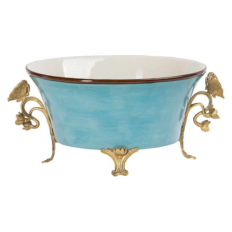 Кашпо цвет голубой с бронзовыми ручками Butterfly