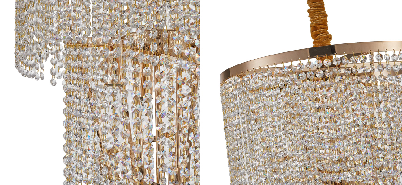 Загляните в мир голливудских ретро-фильмов с помощью модели из серии Crystal Art. Созданная с множеством подвесок из хрусталя, она хорошо закрывает лампы от прямого контакта с руками, минимизируя риск их случайного повреждения или ожога.