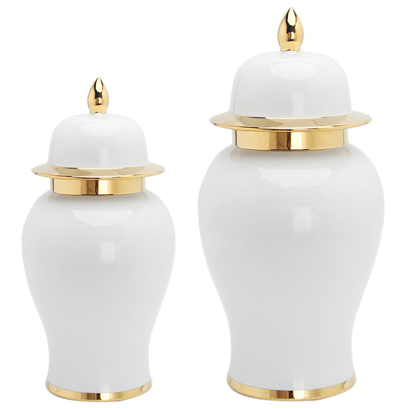 Китайская чайная ваза с крышкой белый с золотом