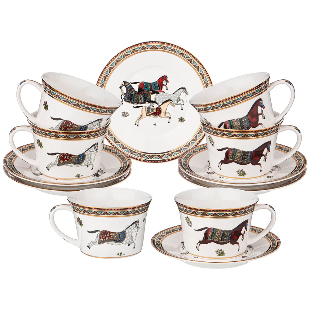 Кофейный сервиз из фарфора с изображением лошадей на 6 персон 12 предметов 180 мл Porcelain Horse Set