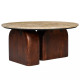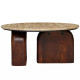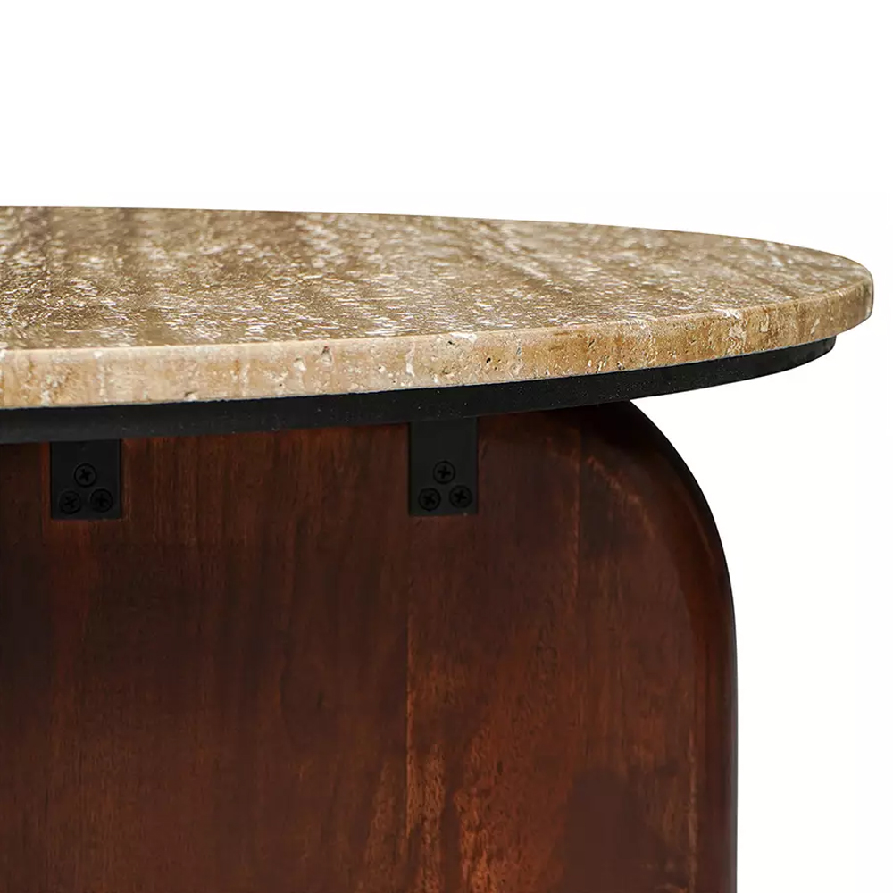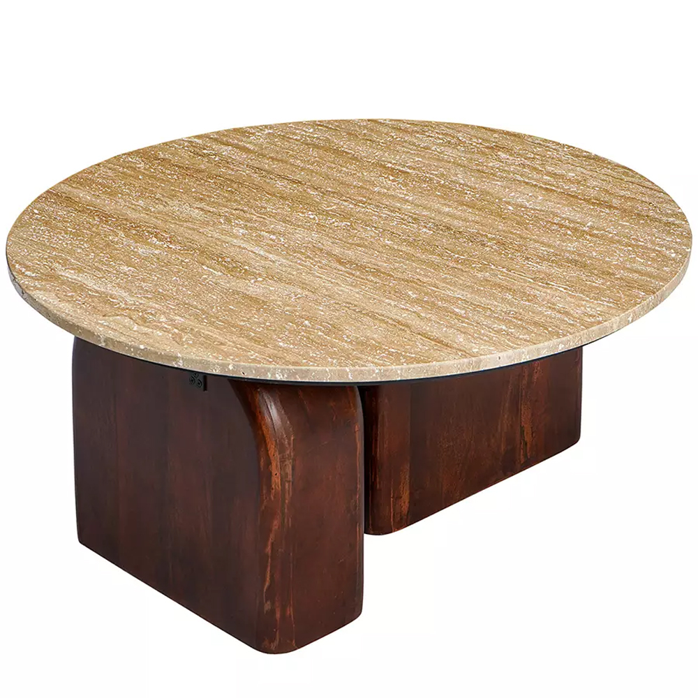 Кофейный столик с круглой столешницей на 2-х массивных деревянных ножках Tandem Travertine and Wood