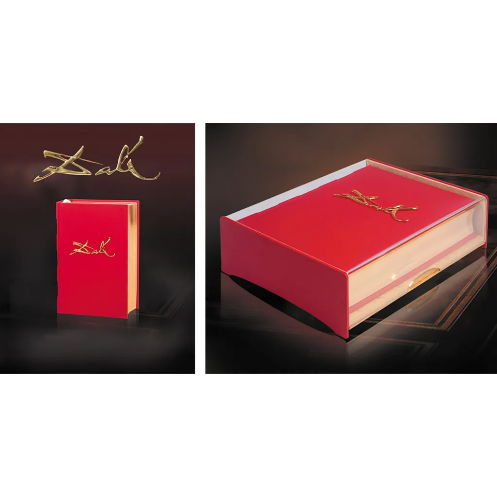Роскошно оформленное эксклюзивное подарочное издание с переплетом из натуральной кожи, украшенным позолоченным отливком подписи гениального мастера и позолоченным обрезом, подпись украшена бриллиантом и уникальным для каждого экземпляра сочетанием трех других драгоценных камней.