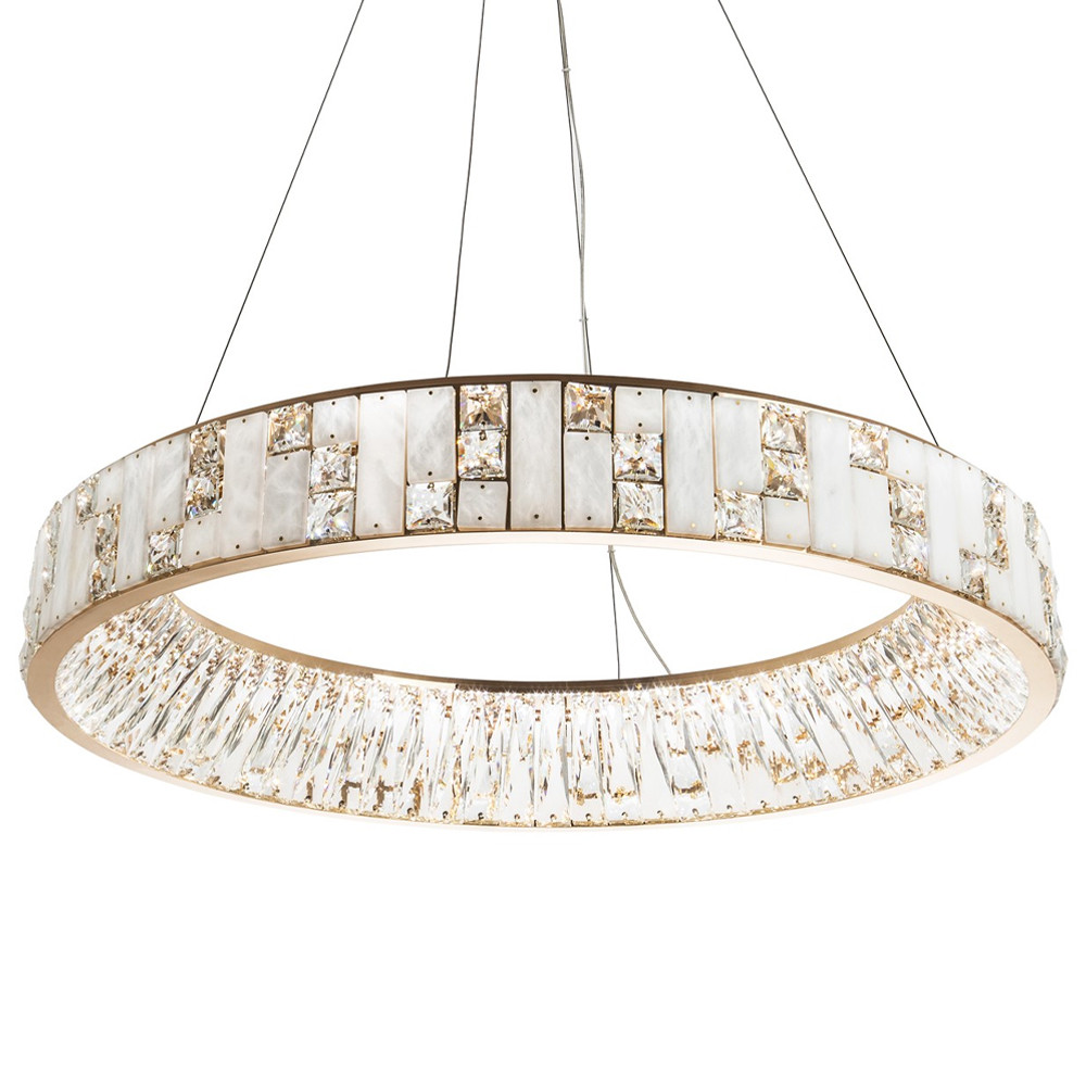 Кольцевая люстра с декором из мрамора и хрусталя Dione Ring Marble Crystal Chandelier