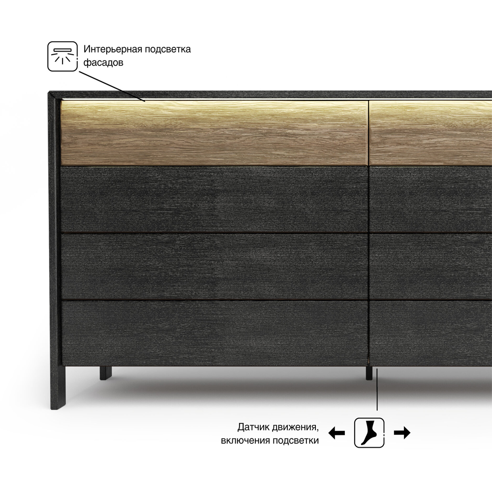 Комод 8 ящиков с подсветкой на рельефном фасаде Warm Industrial