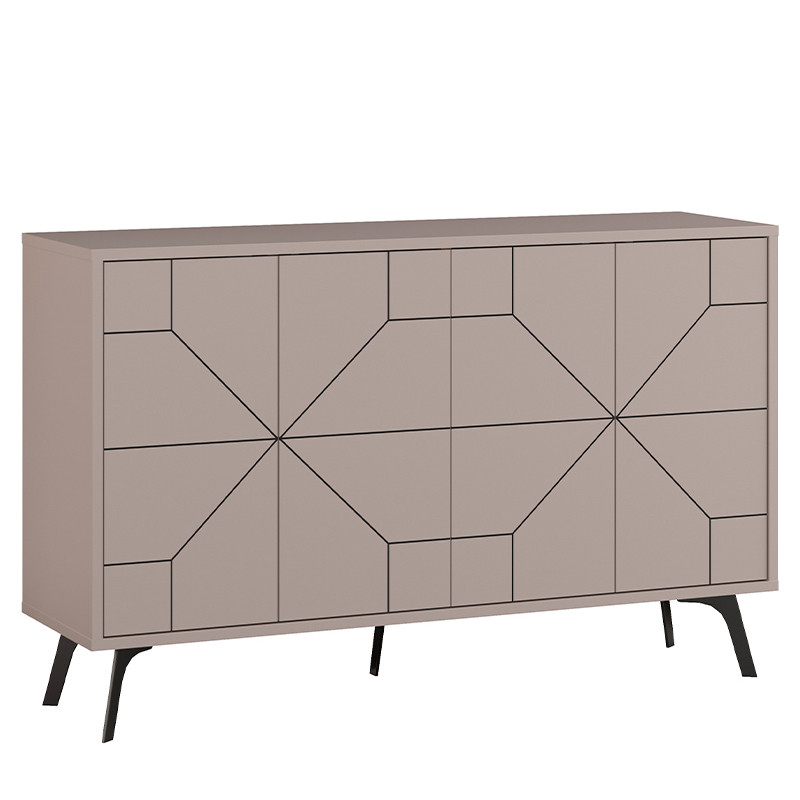 Комод бежево-серый с 4-мя дверцами с геометрическим рисунком на металлических ножках DUNE CONSOLE LIGHT MOCHA