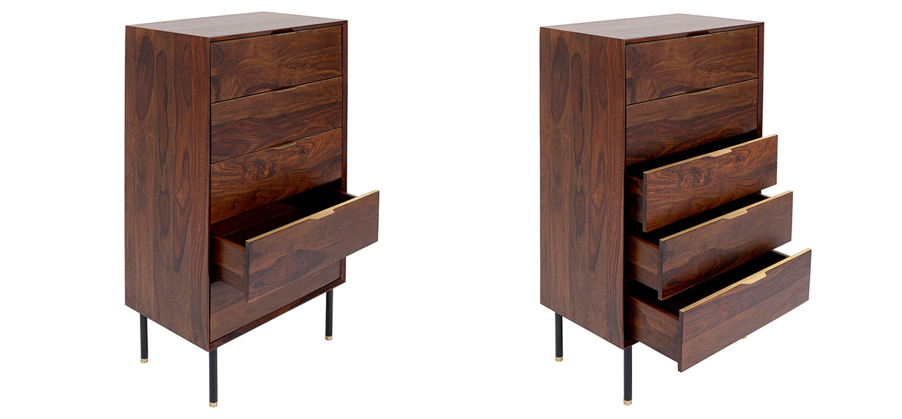 У него есть четыре выдвижных ящика, которые подходят для хранения белья, одежды и других мелочей.