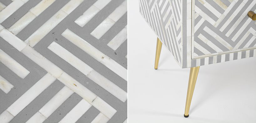 Купить комод инкрустация костью Gray Indian Bone Inlay 3 drawer Серый – это выбрать модель, где каждый элемент тщательно обработан, поэтому безопасен для использования.