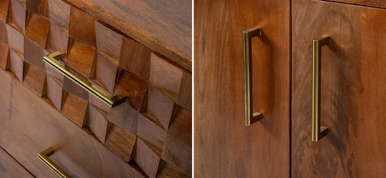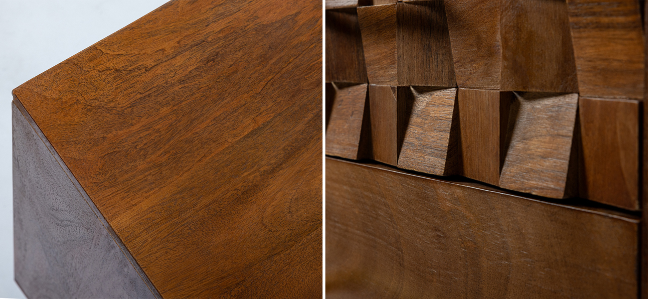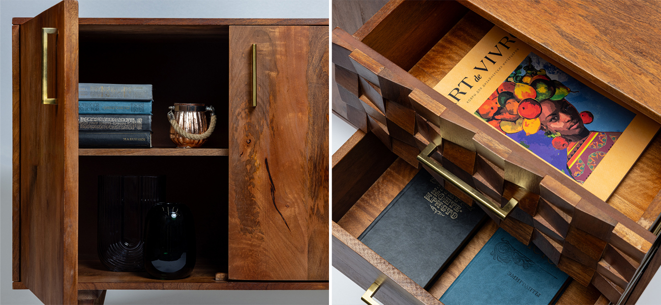 Комод выполнен из массива манго – экологически чистого, прочного и долговечного материала, который отличается уникальной текстурой.