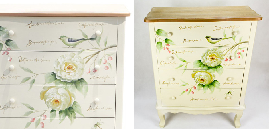 Комод прованс с изображением птицы и цветов Bird Among Flowers