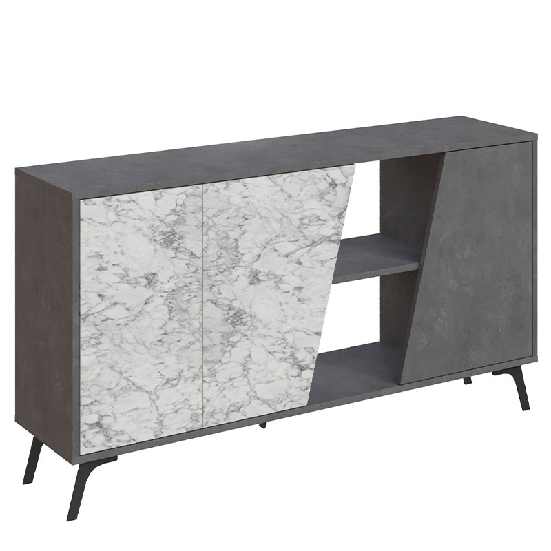 Комод с 3-мя дверцами и 2-мя открытыми отделениями серого и белого мраморного цвета FIONA CONSOLE 150 RETRO GRAY