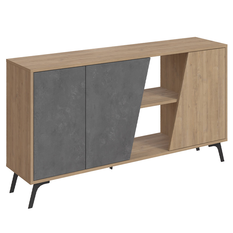 Комод с дверцами и 2-мя открытыми отделениями серого и древесного цвета FIONA CONSOLE OAK