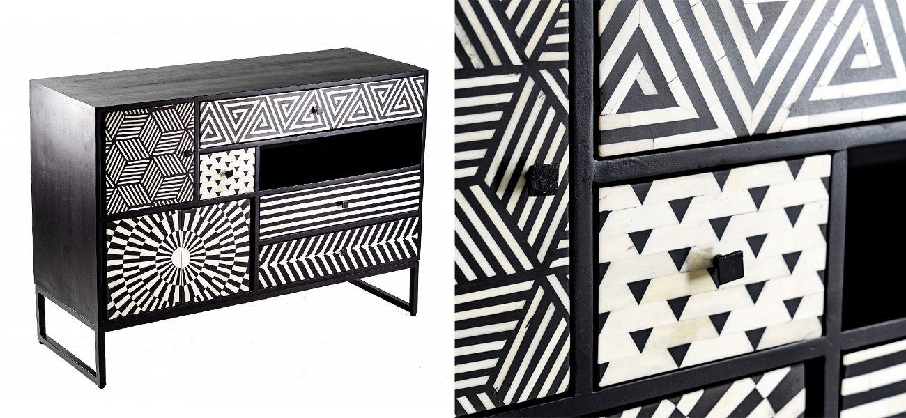 Комод с орнаментом инкрустированный костью Bone Inlay 115 см