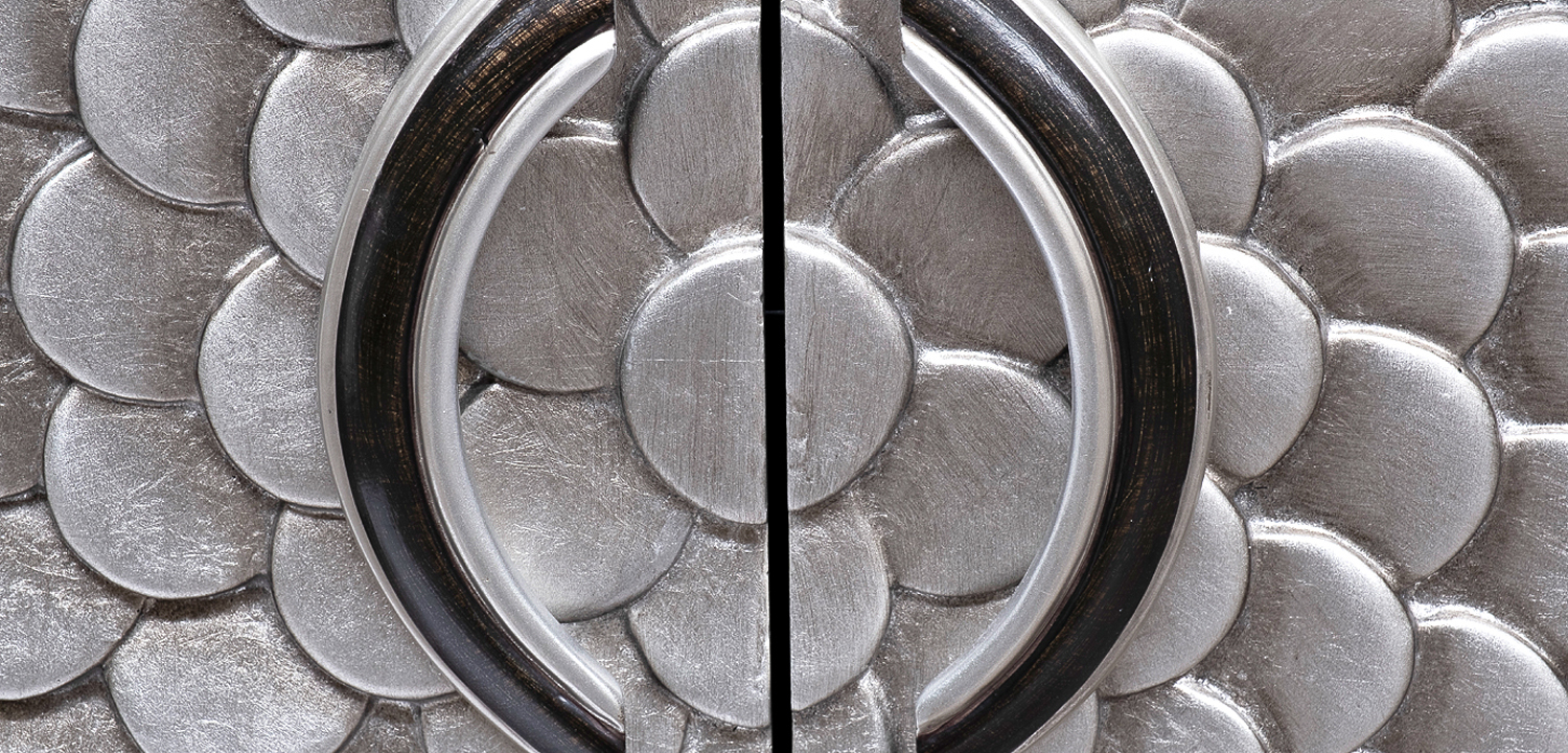 Купить комод с рельефным орнаментом Рыбья чешуя Fish scales Chest of drawers – это выбрать уникальный предмет мебели, где рельеф выполнен из тончайшей фольги серебряного цвета, а каждая чешуйка покрыта лаком для дополнительной защиты и продления срока службы.