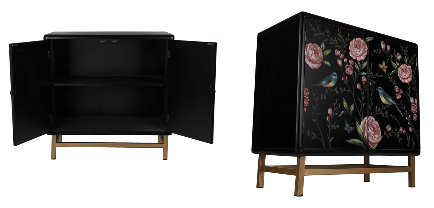К тому же, стоит купить комод с росписью птицы и цветы Black Chest Of Drawers Peonies Черный – из-за его вместительных полок, где можно хранить что угодно, от одежды до аксессуаров.
