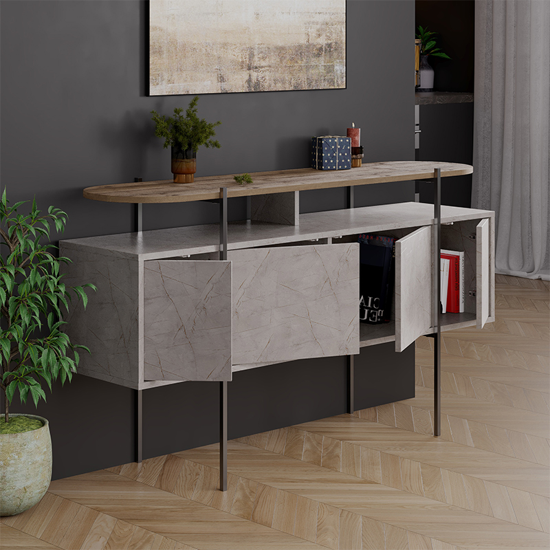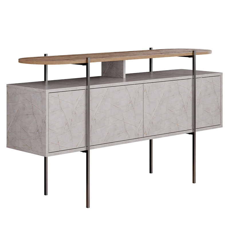 Комод с цветом фасада бежевый мрамор с деревянной столешницей на металлических ножках HANLEY CONSOLE HITIT LAGINA
