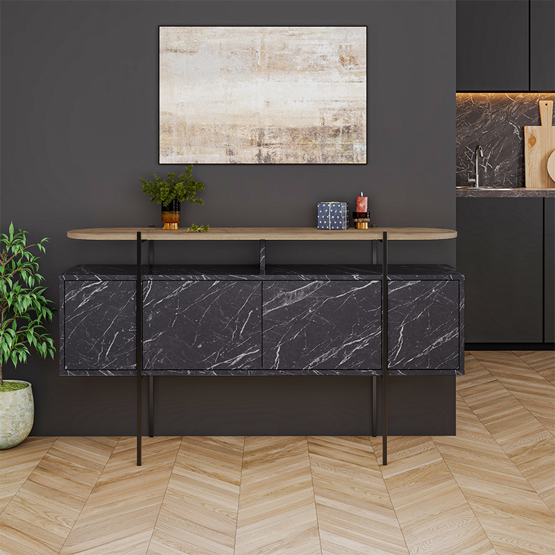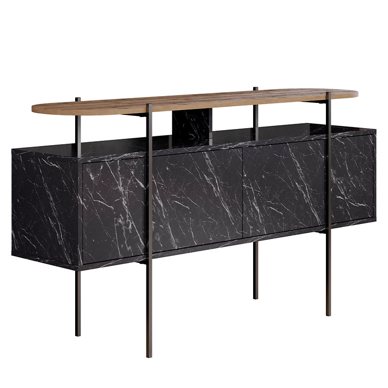 Комод с цветом фасада черный мрамор с деревянной столешницей на металлических ножках HANLEY CONSOLE HITIT BENDIR