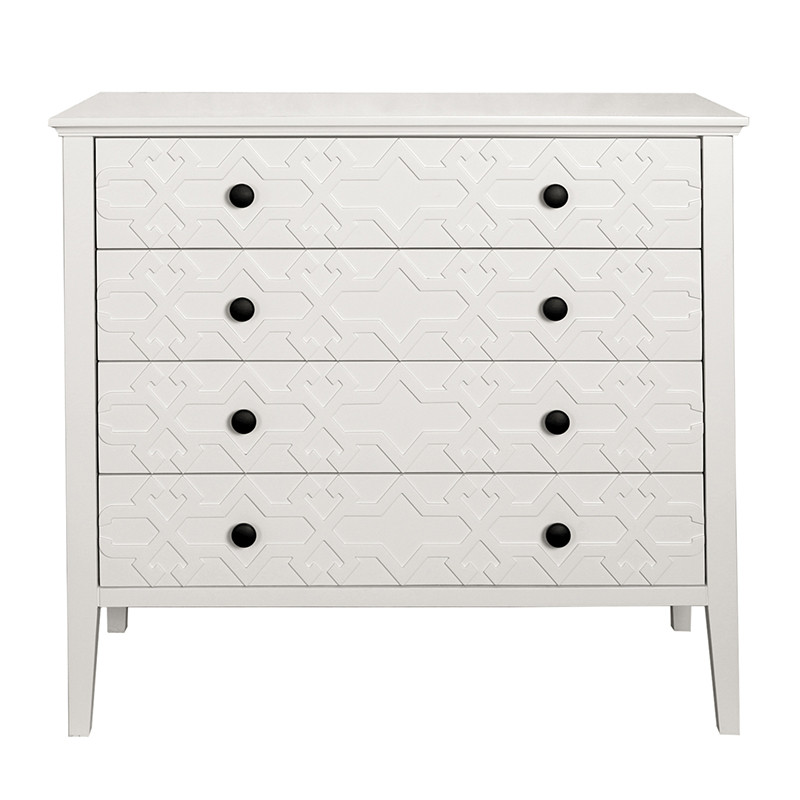 Купить комод цвет белый Country Style – это выбрать модель с четырьмя вместительными ящиками, которые открывают перед вами достаточно места для хранения всех вещей, будь то одежда, аксессуары или важные документы.