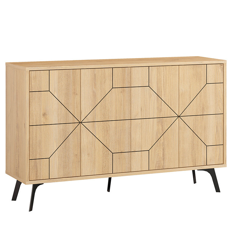 Комод цвета древесины с 4-мя дверцами с геометрическим рисунком на металлических ножках DUNE CONSOLE OAK