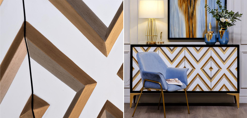 Купить комод в стиле арт-деко Kente Pattern Commode – это выбрать модель из МДФ, древесноволокнистой плиты средней плотности. Это материал, изготовленный из мелкодисперсной древесной стружки, которая под высоким давлением и температурой формируется в плиты.