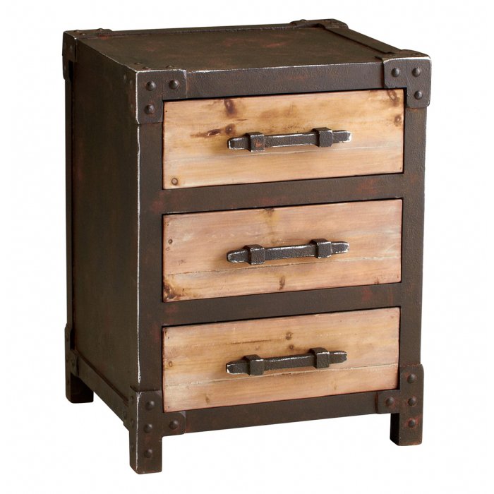 Комод Industrial Loft Raw Chester Storage имеет мужественный характер: он полностью сделан из металла, на каркасе есть брутальные декоративные элементы, а ручки на ящиках навеивают что-то из Средневековья. Эта модель выполнена в стиле лофт, и будет гармонично сочетаться с интерьером во многих современных стилях. Комод имеет небольшие размеры – 50х45х65 см, что позволяет использовать его в качестве стильной и нетривиальной прикроватной тумбочки.