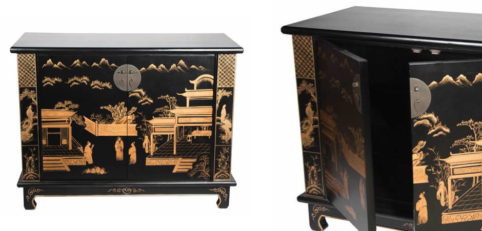 К тому же, стоит купить комод в стиле Шинуазри Chinese History Comode за вместительные полки, где можно хранить различные предметы быта и аксессуары.
