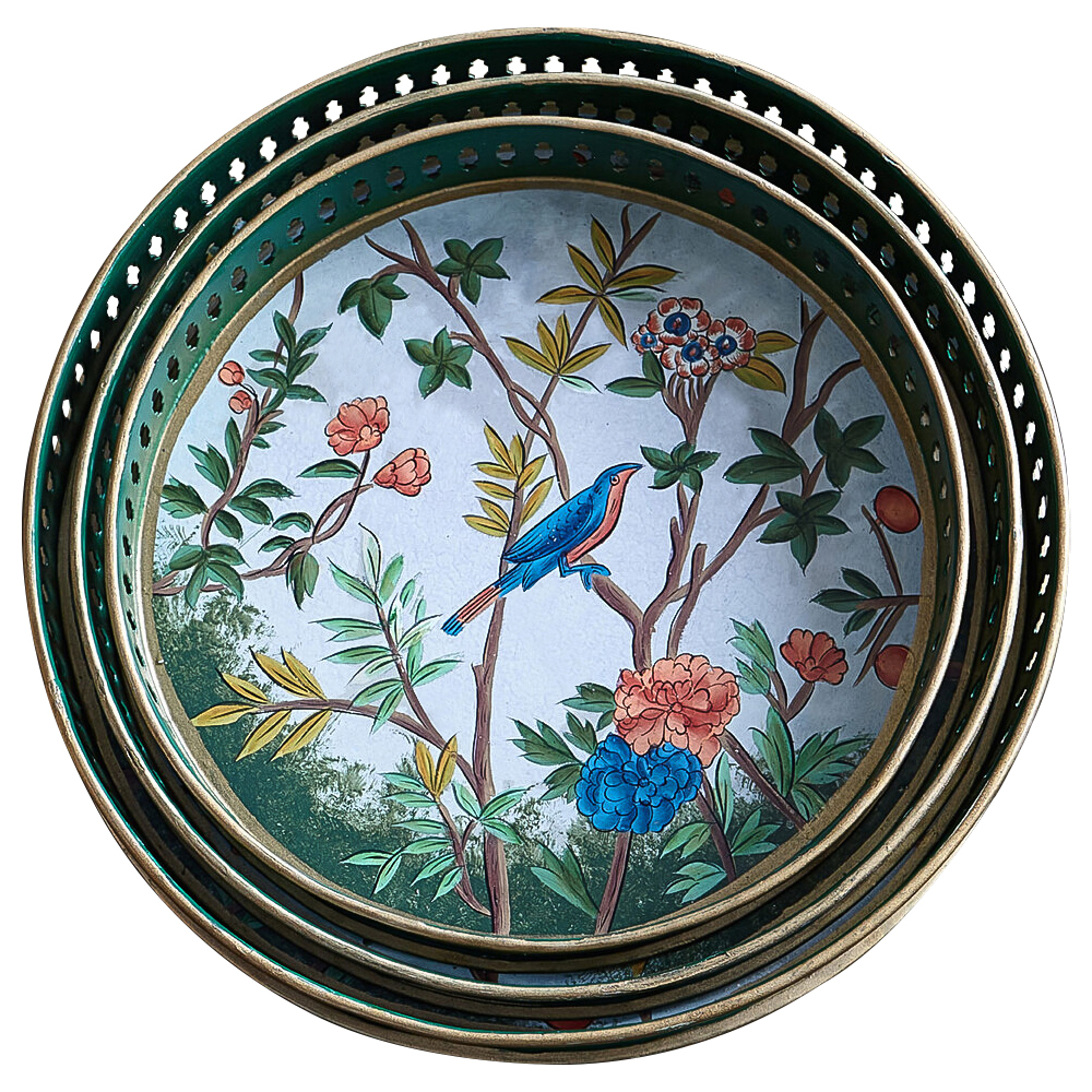 Комплект из 3-х подносов из металла в стиле Шинуазри Chinoiserie Flower