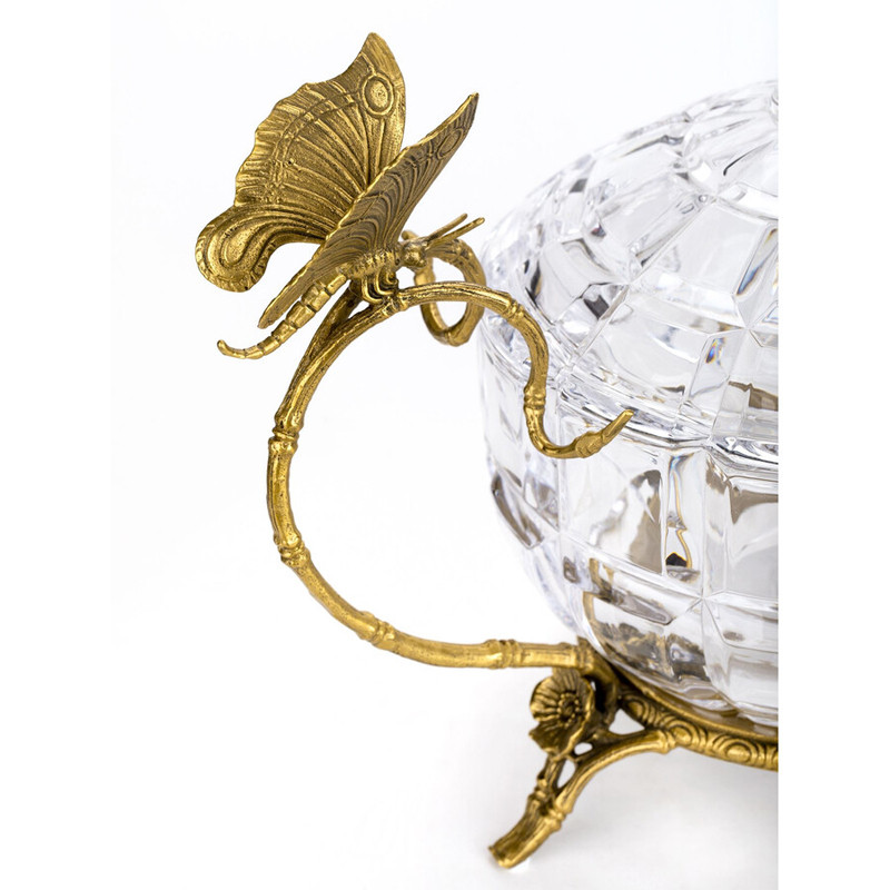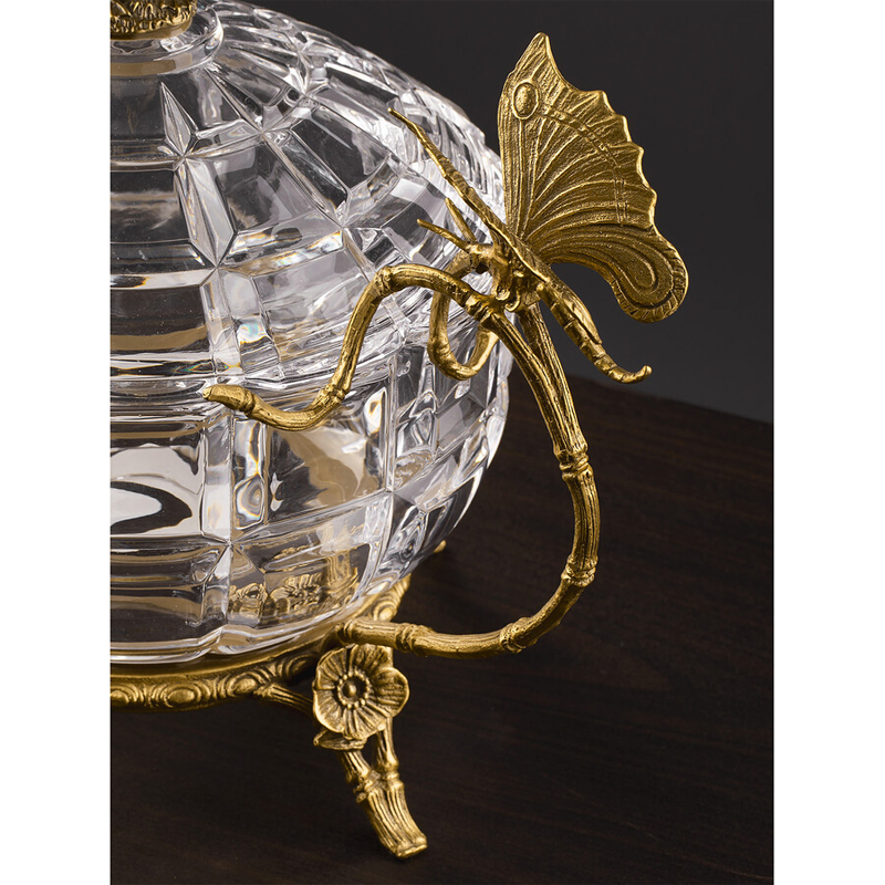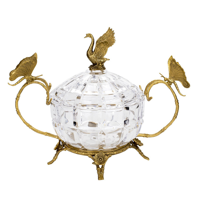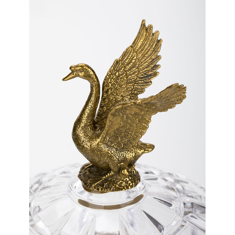 Конфетница из прозрачного рельефного стекла с ручками в виде стрекоз и фигуркой лебедя Eden Garden