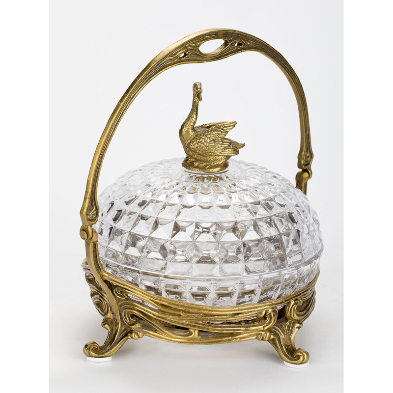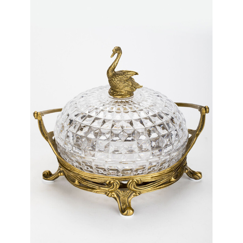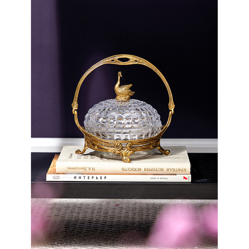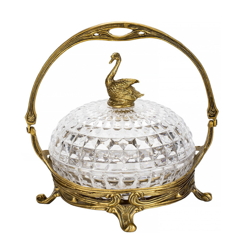 Конфетница из прозрачного рельефного стекла с ручкой и фигуркой лебедя Eden Garden
