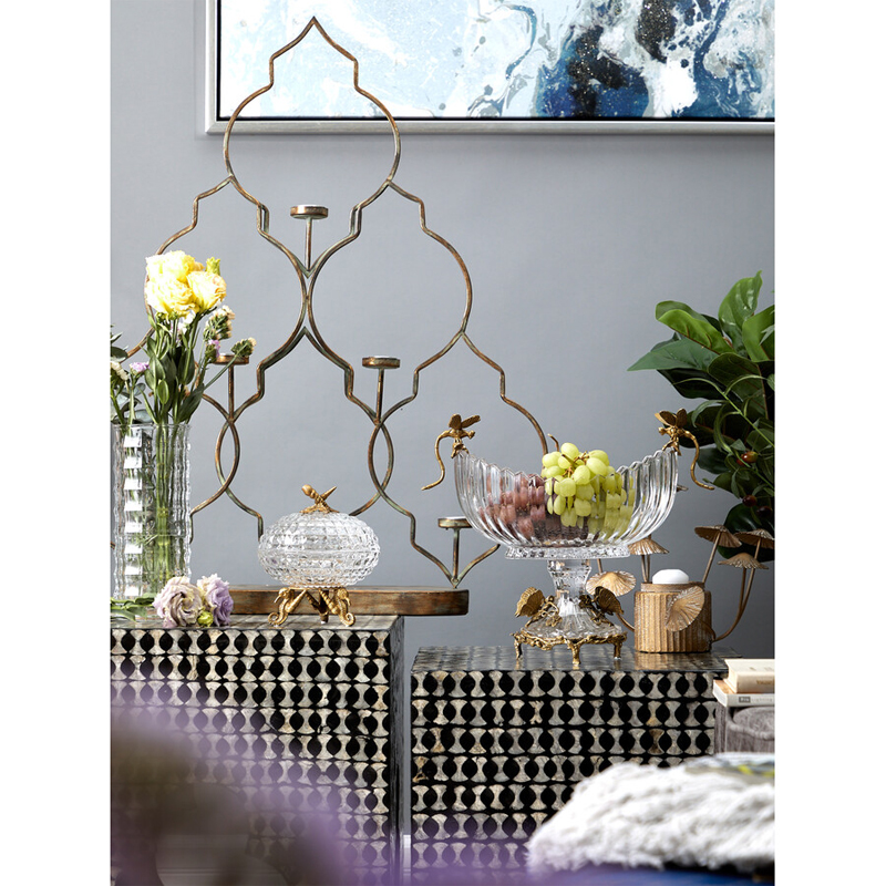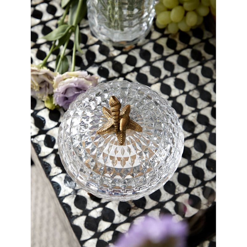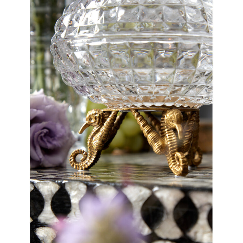 Конфетница прозрачная стеклянная на бронзовых ножках в виде морских коньков с крышкой в виде ракушки Eden Garden
