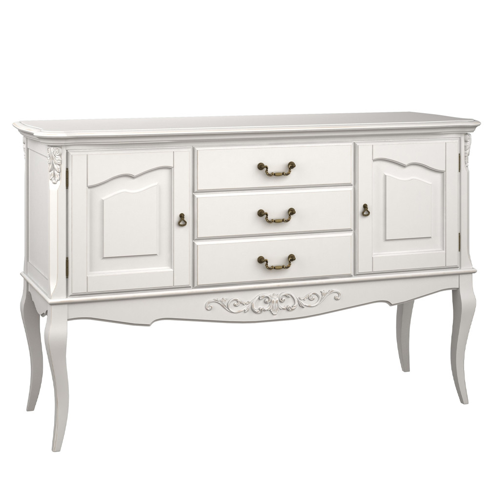 Консоль белая из массива бука с ящиками в стиле прованс White Provence