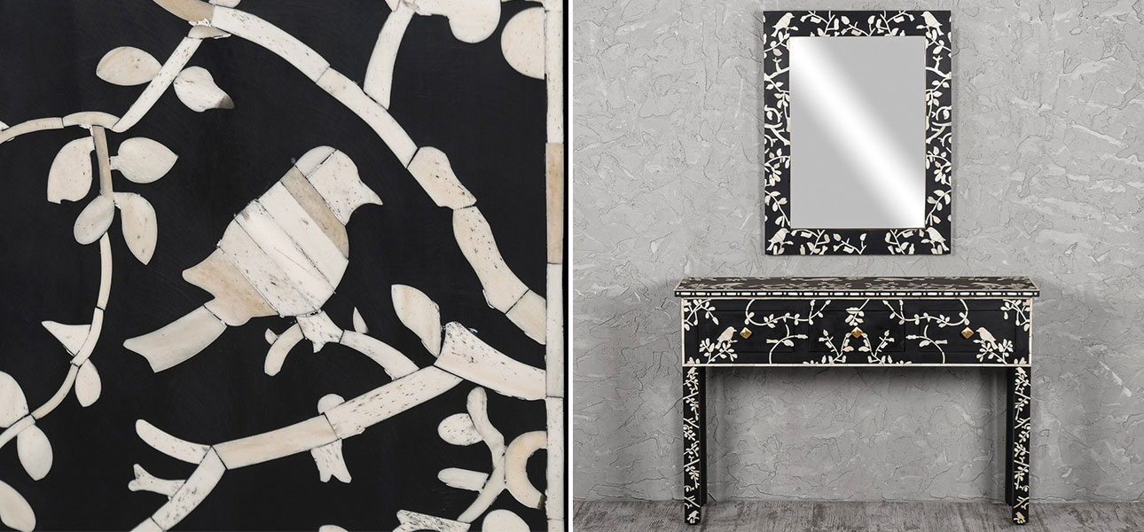 Величественный стол из натурального дерева, покрытый изысканной инкрустацией из слоновой кости, олицетворяет собой неподдельную красоту и роскошь. В его простоте и благородстве чувствуется дыхание времени, словно он является не просто предметом мебели, а подлинным произведением искусства.