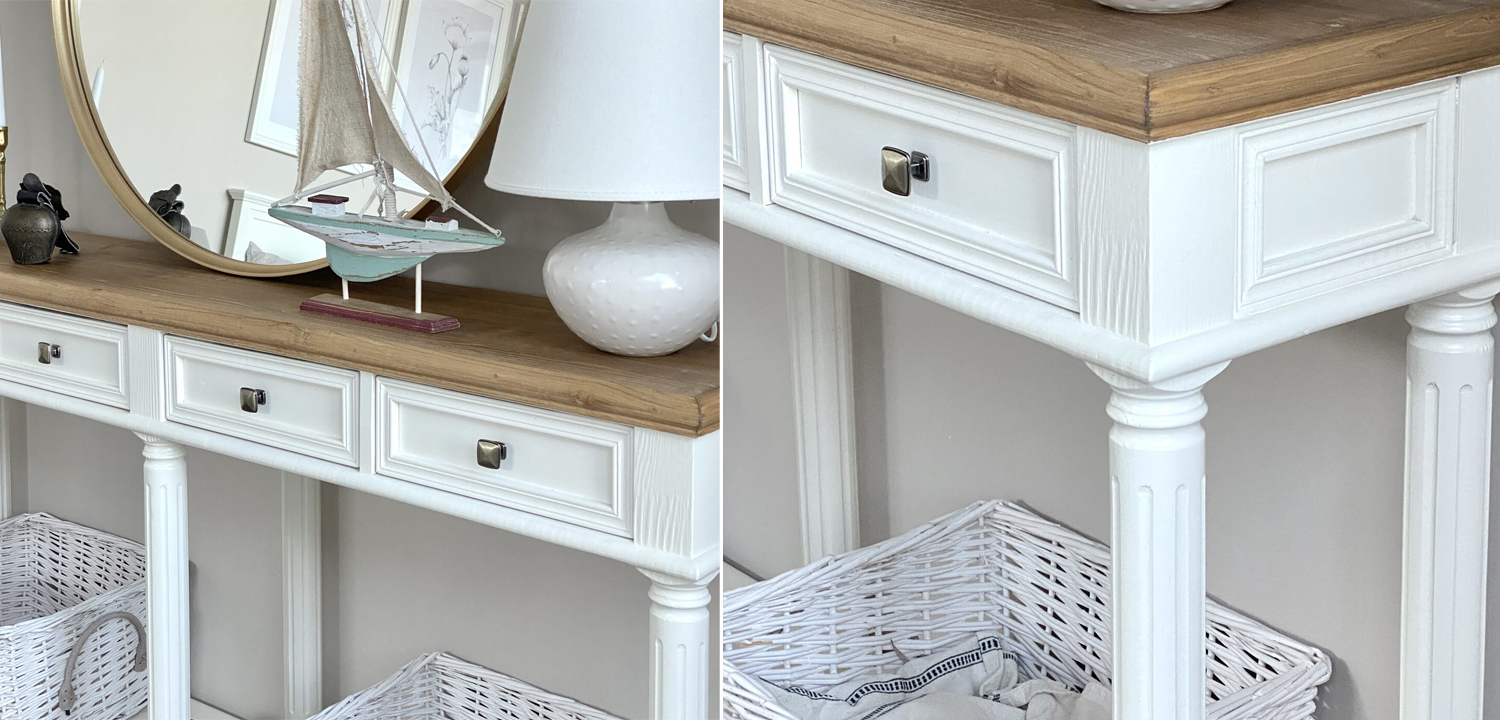 Если купить консоль Gladys Console с ящиками и полками, она поможет вам организовать пространство гостиной, спальни или прихожей.