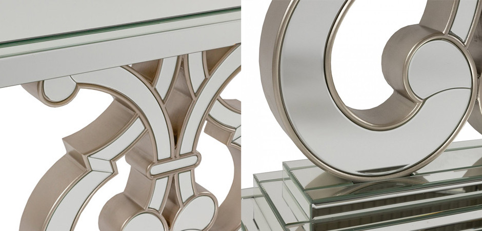 Если купить консоль Mirrored Patterned Console, то с легкостью можно увидеть, как уникальный и сложный узор у опоры, такой яркий и притягательный, создает ощущение плетения сказочных мотивов и тайных символов. Каждый перелив и его контур – призывает к глубокому погружению в мир чудес и эстетического великолепия.