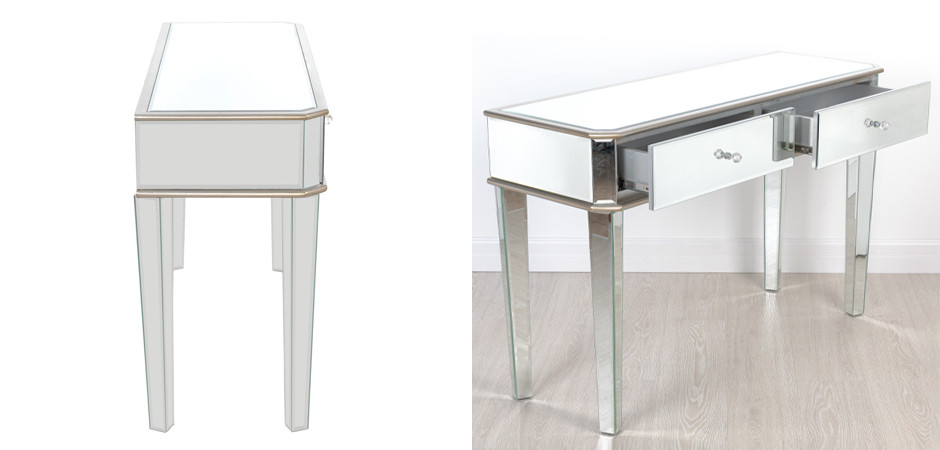 Ее дизайн сочетает в себе простоту и изящество. Зеркальная поверхность отражает свет, делая пространство визуально больше и светлее. А два выдвижных ящика – позволяют купить консоль с зеркальной поверхностью Invisible, чтобы хранить в ней различные предметы, сохраняя порядок на столешнице.