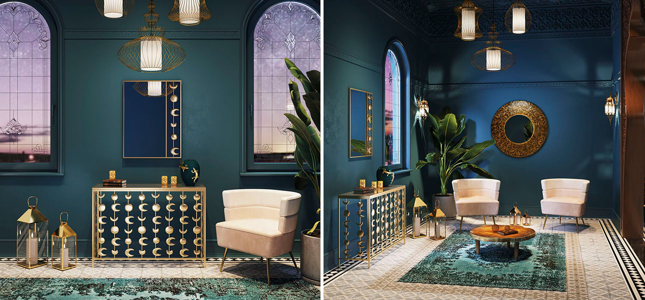 На верхней полке консоли можно разместить различные аксессуары, такие как свечи, вазы или статуэтки. А купить консоль золотая луна Full Moon стоит как для гостиной, так и для спальни, ведь благодаря компактности – она подойдет для любого помещения.
