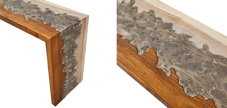 Подобно величественному дереву, консоль наполняет пространство своим великолепием и гармонией. Ее изящный и роскошный дизайн притягивает внимание, будто сплетение ветвей разных пород, на которых пляшут лучи золотого света.