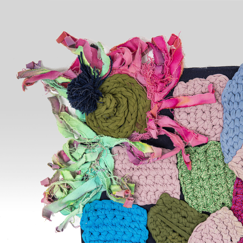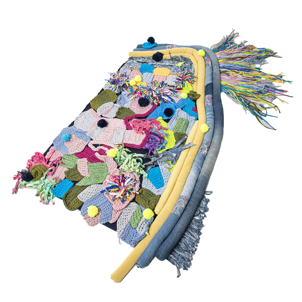 Ковер разноцветный из джинсовой одежды и армейских палаток Upcycling