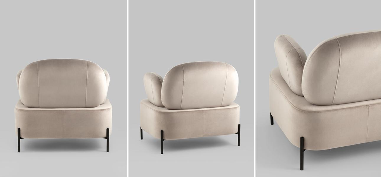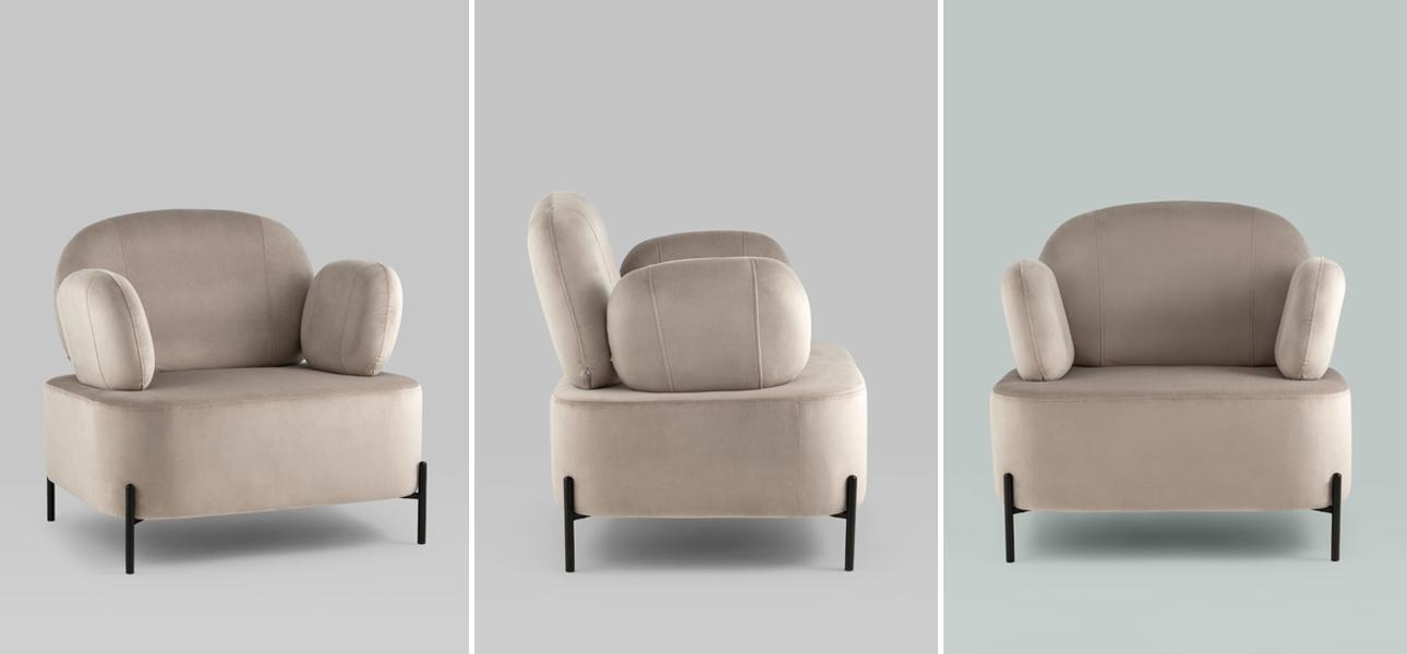 Компактные размеры – делают модель универсальной (может подойти как для гостиной, так и для спальни / офиса). А также, если купить кресло Color Block бежево-серый велюр, его легче перемещать и переставлять из-за миниатюрности.