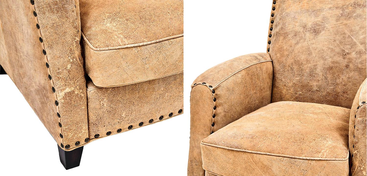 – Кожаная обивка выдерживает повседневные износы и много лет сохраняет свой первоначальный вид, не выцветая и не теряя форму.