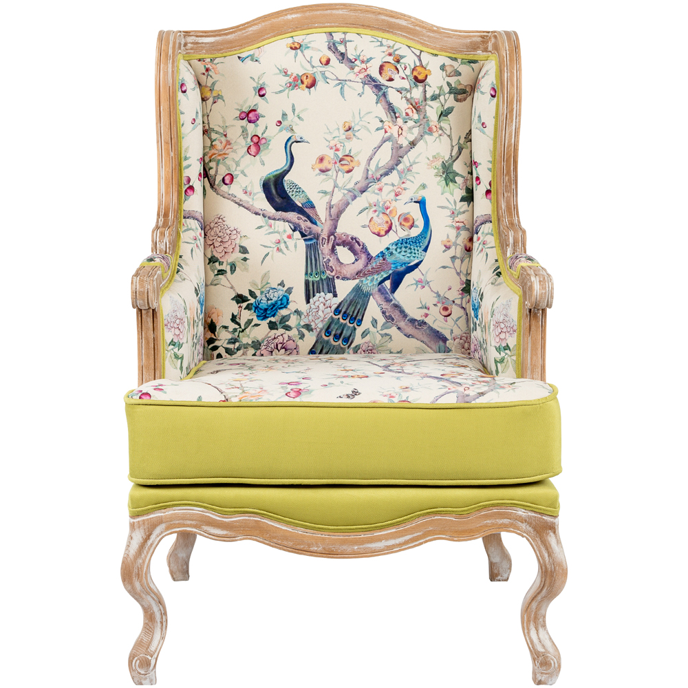 Кресло из натурального бука бежевое с изображением птиц и цветов Beige Green Chinoiserie Garden Armchair